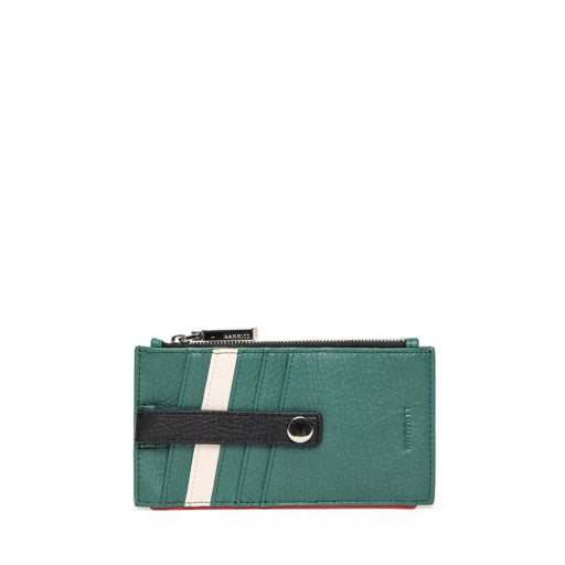 - Crafted with a rich, lush green pebble leather with classic black and calla lily white paneling and piping details