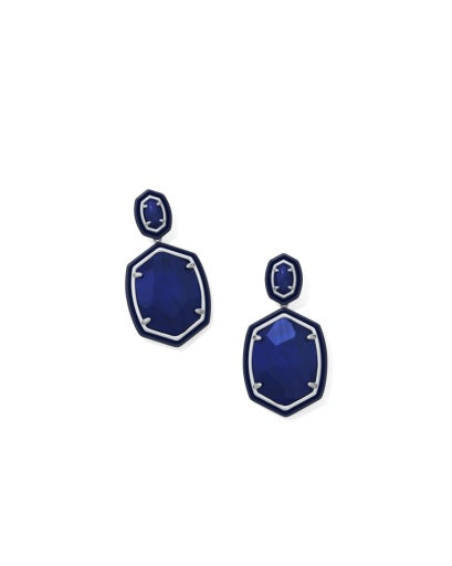 9608876500 DAPHNE ENAMEL FRAME DROP EARRINGS SILVER NAVY MOTHER OF PEARL ONE SIZE