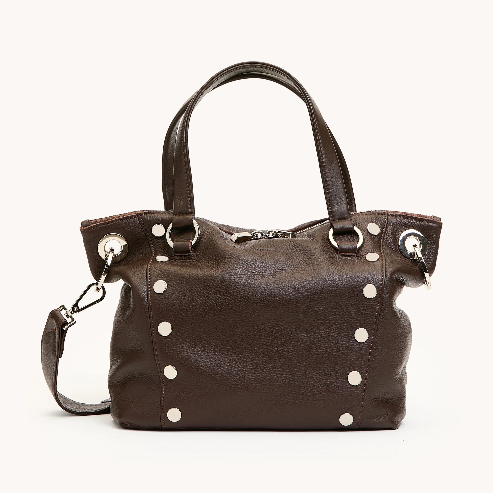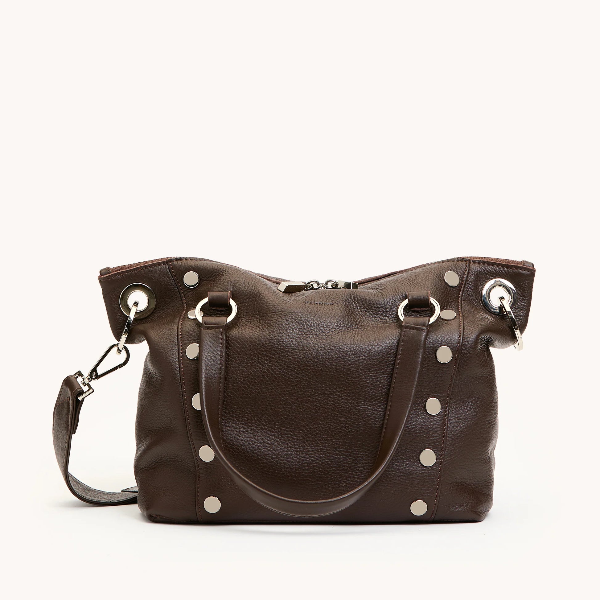 Get down to business with this compact take on our classic Daniel satchel. Crafted with additional rivets, a double zippered pocket, three interior drop pockets and reinforced hardware, the revamped Daniel is ready to take on your busy calendar. Ready to set a meeting?