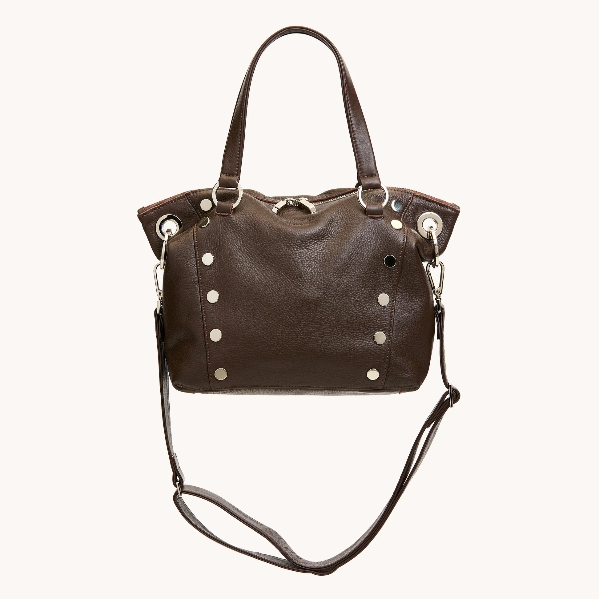 - Top handles and removable, adjustable crossbody strap