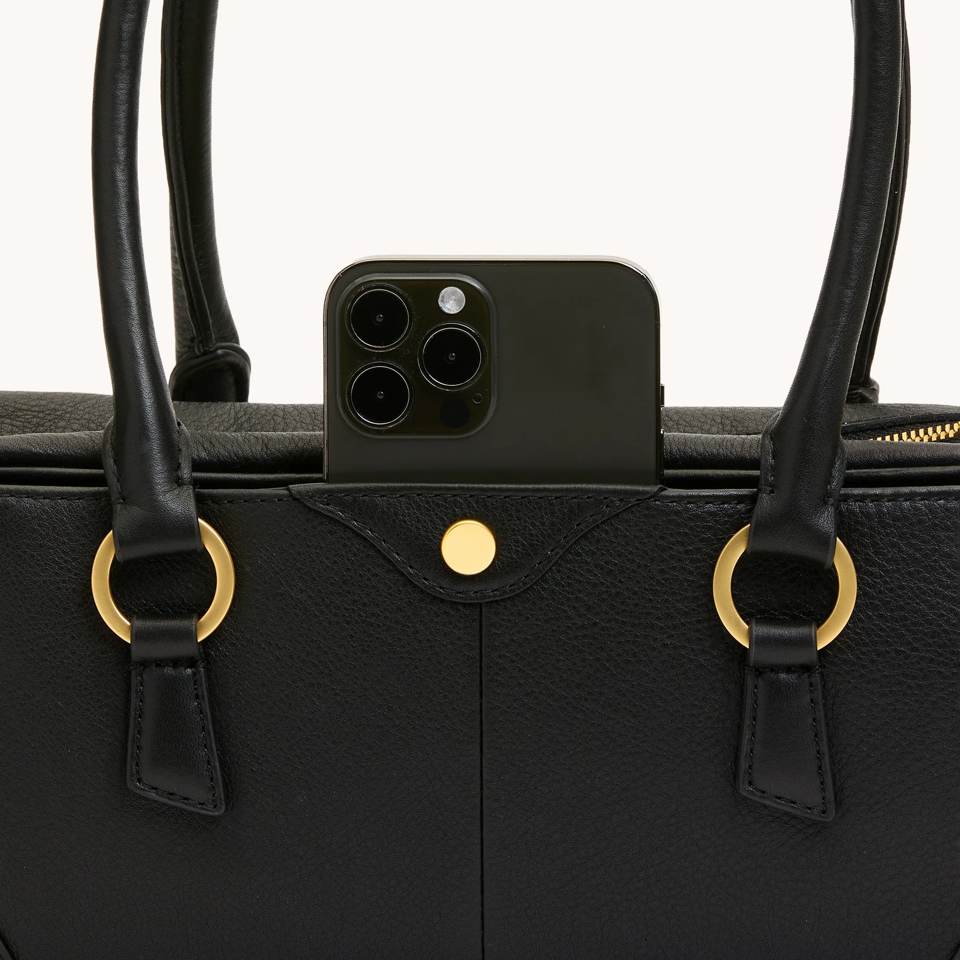 - Crafted with a classic black pebble leather